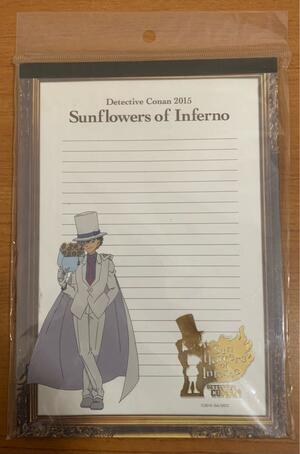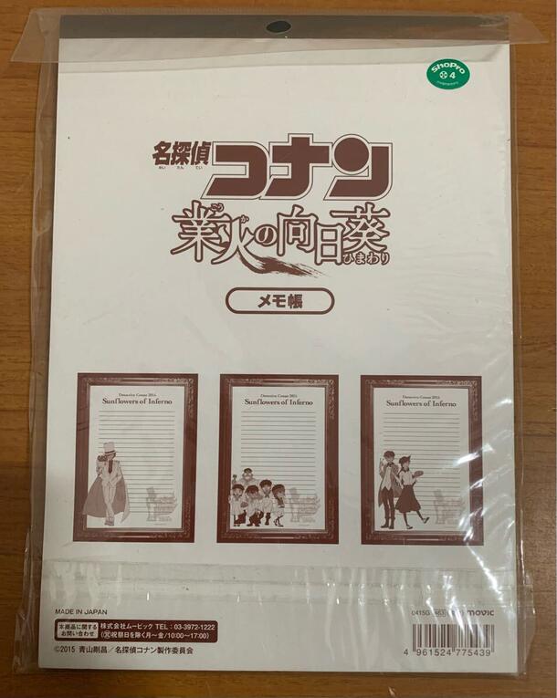 大人気アニメ『名探偵コナン』の劇場版第19作 「業火の向日葵(Sunflowers of Inferno)」 公開記念グッズ、オリジナルメモ帳 です。