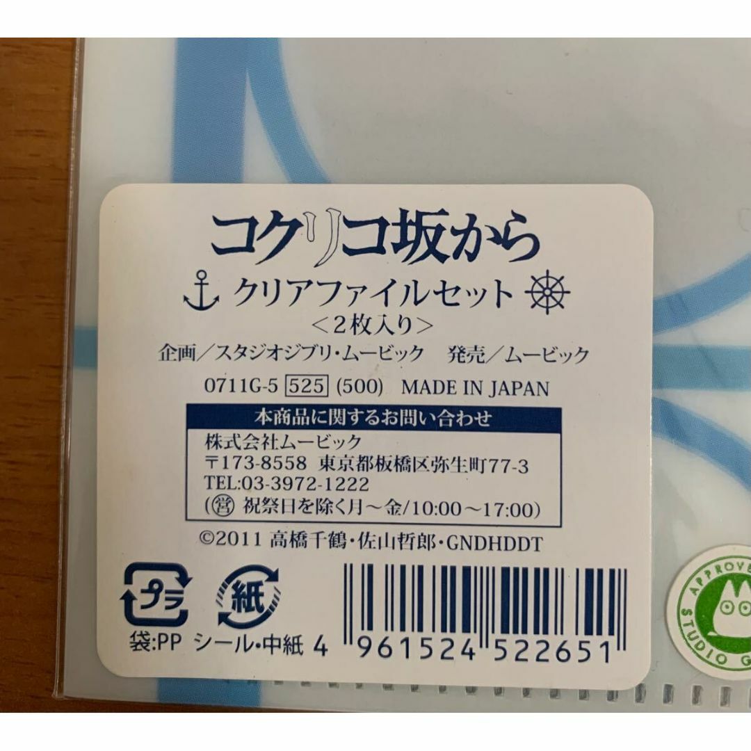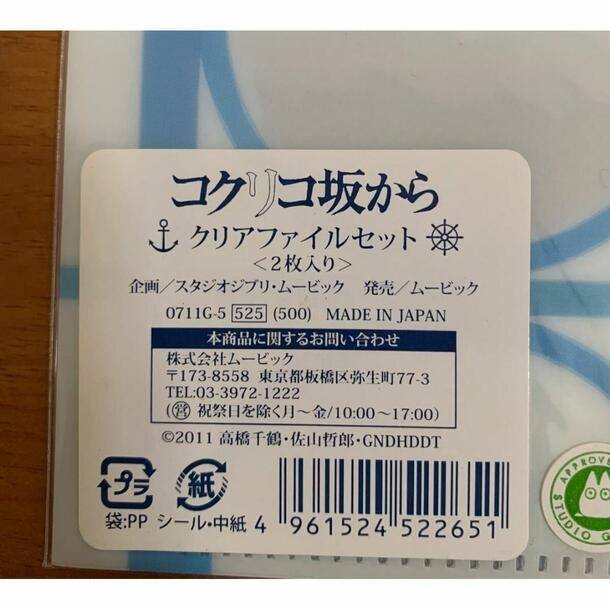 スタジオジブリ作品『コクリコ坂から』のA4サイズクリアファイル2枚セットです。