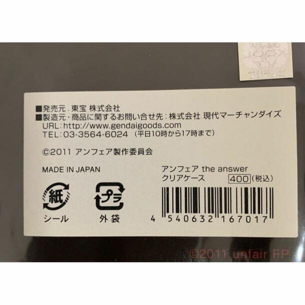 2011年公開の映画『アンフェア the answer』の公式クリアケースです。