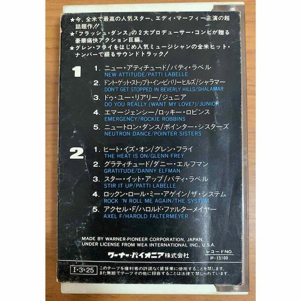 80年代を代表する大ヒット映画『ビバリーヒルズ・コップ』のサウンドトラック・カセットテープです。