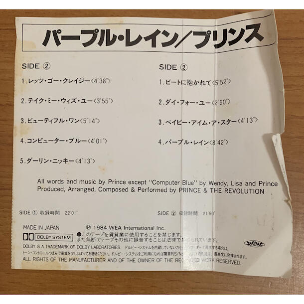 プリンスの代表作にして歴史的名盤のカセットテープです。