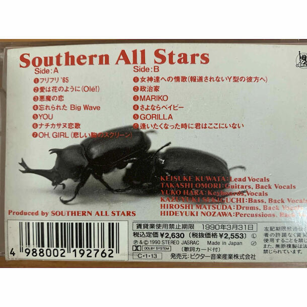日本を代表する国民的バンド、サザンオールスターズのカセットテープです。
