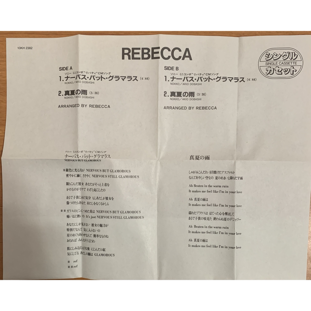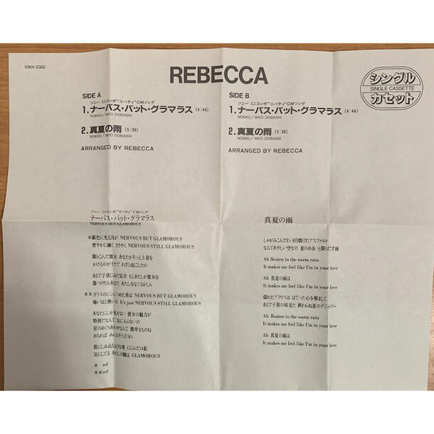 1980年代の人気ロックバンド REBECCA のシングルカセット。