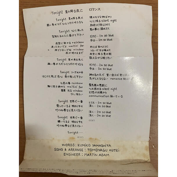 80年代~90年代を代表する女性ロックシンガー、山下久美子のシングルカセット。