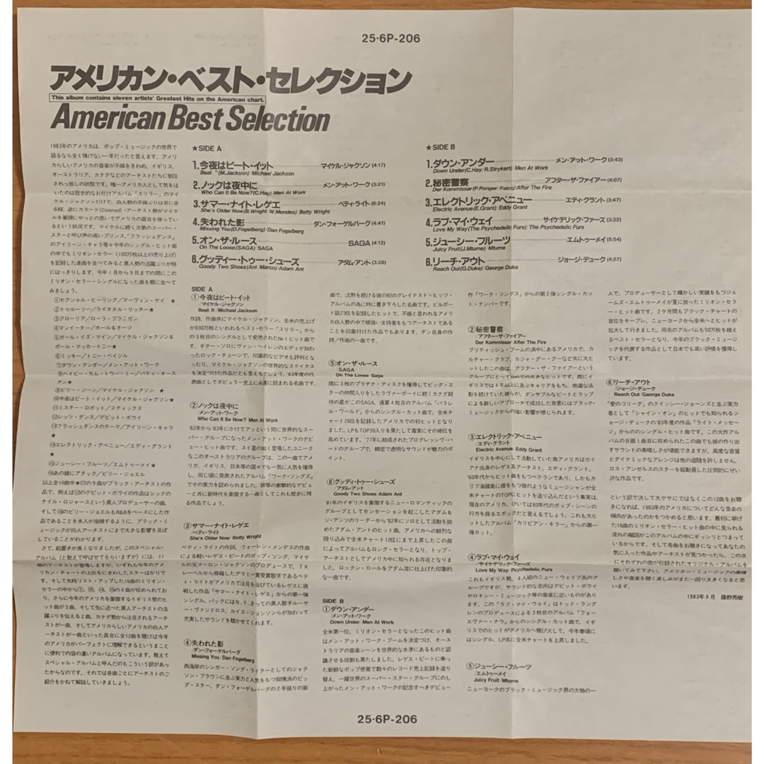 マイケル・ジャクソンやメン・アット・ワーク、エディ・グラントなど、当時の洋楽シーンを代表するアーティストの楽曲を楽しめる豪華な内容となっています。