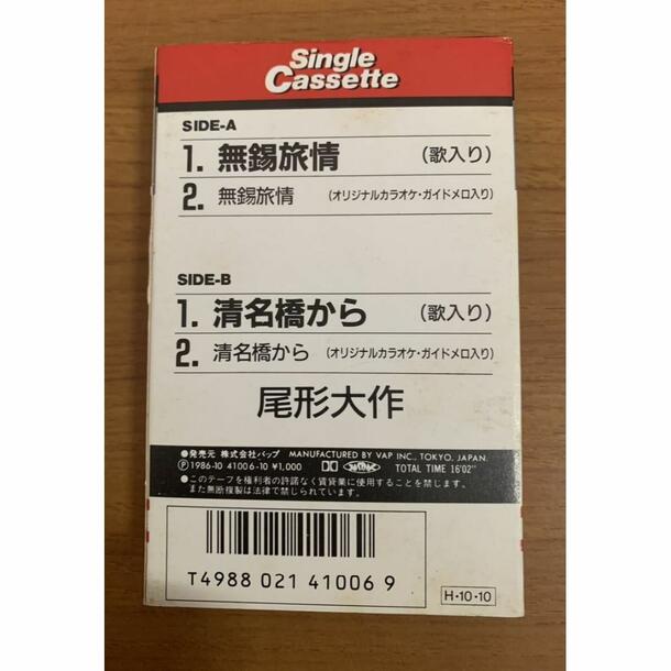 演歌歌手・尾形大作の楽曲を収録したシングルカセットテープです。