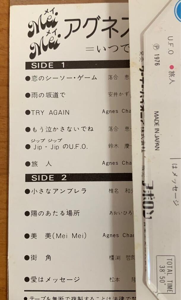 人気歌手アグネス・チャンによるアルバム『いつでも夢を(Mei Mei)』のカセットテープです。