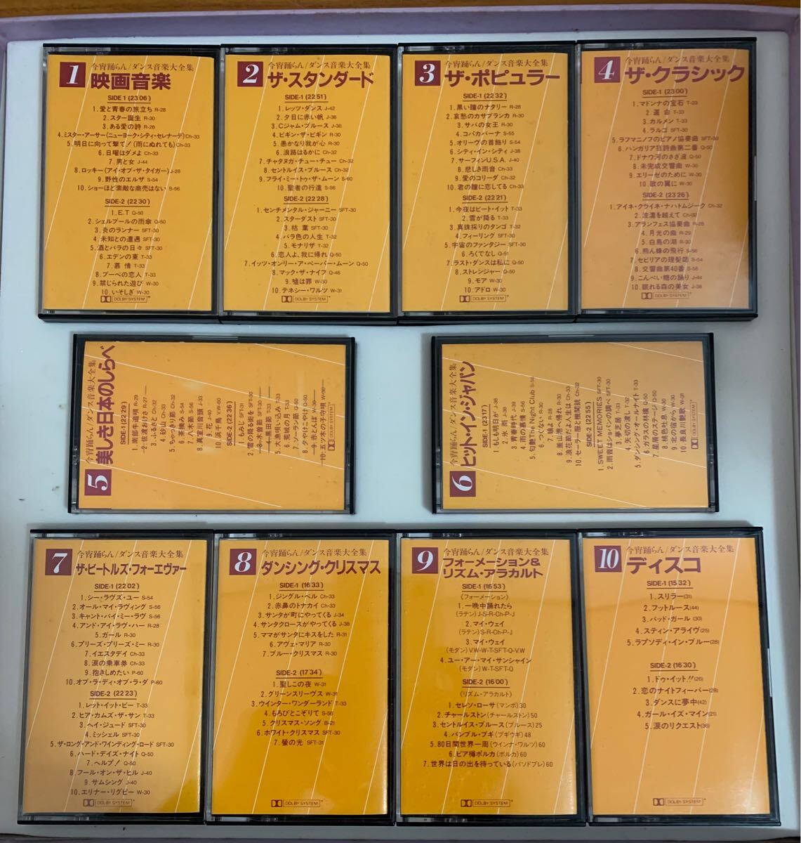 ワルツ・タンゴ・ルンバ・チャチャチャ・サンバなど、各ジャンルの名曲を集めた全10本セットです。