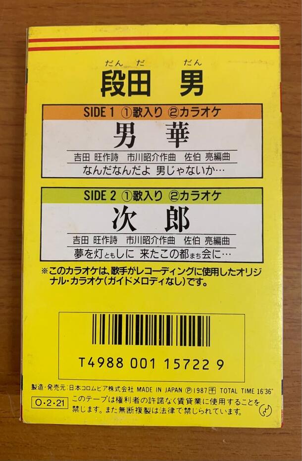演歌歌手・段田 男(だんだ だん)によるシングル作品「男華/次郎」のカセットテープです。