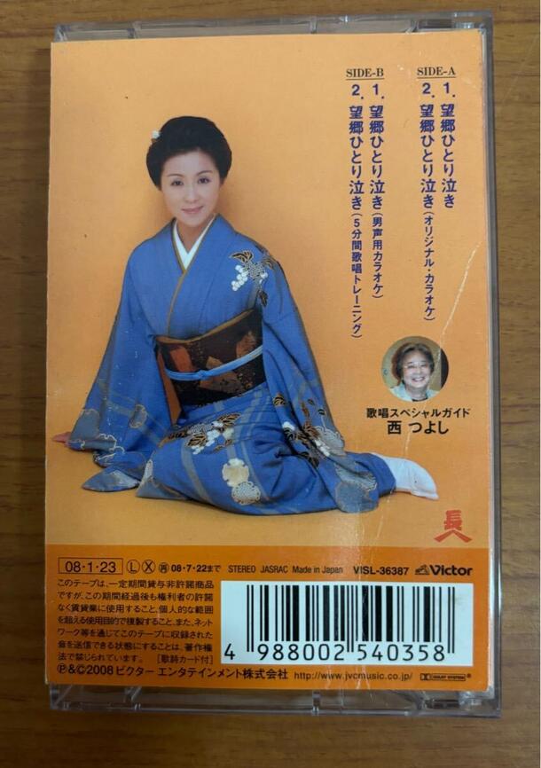 長山洋子が歌う「望郷ひとり泣き」を収録したシングルカセットです。