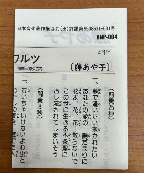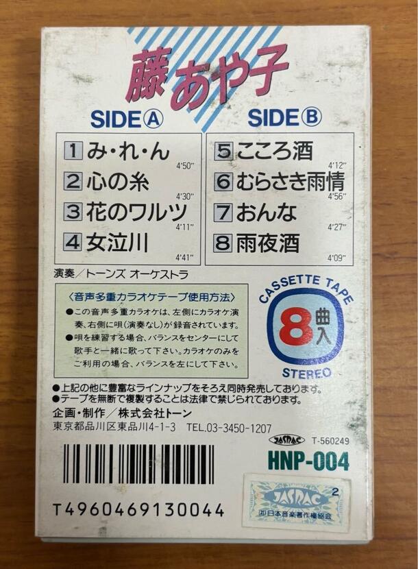 藤あや子の代表曲「み・れ・ん」「こころ酒」などを収録した音声多重カラオケカセットです。