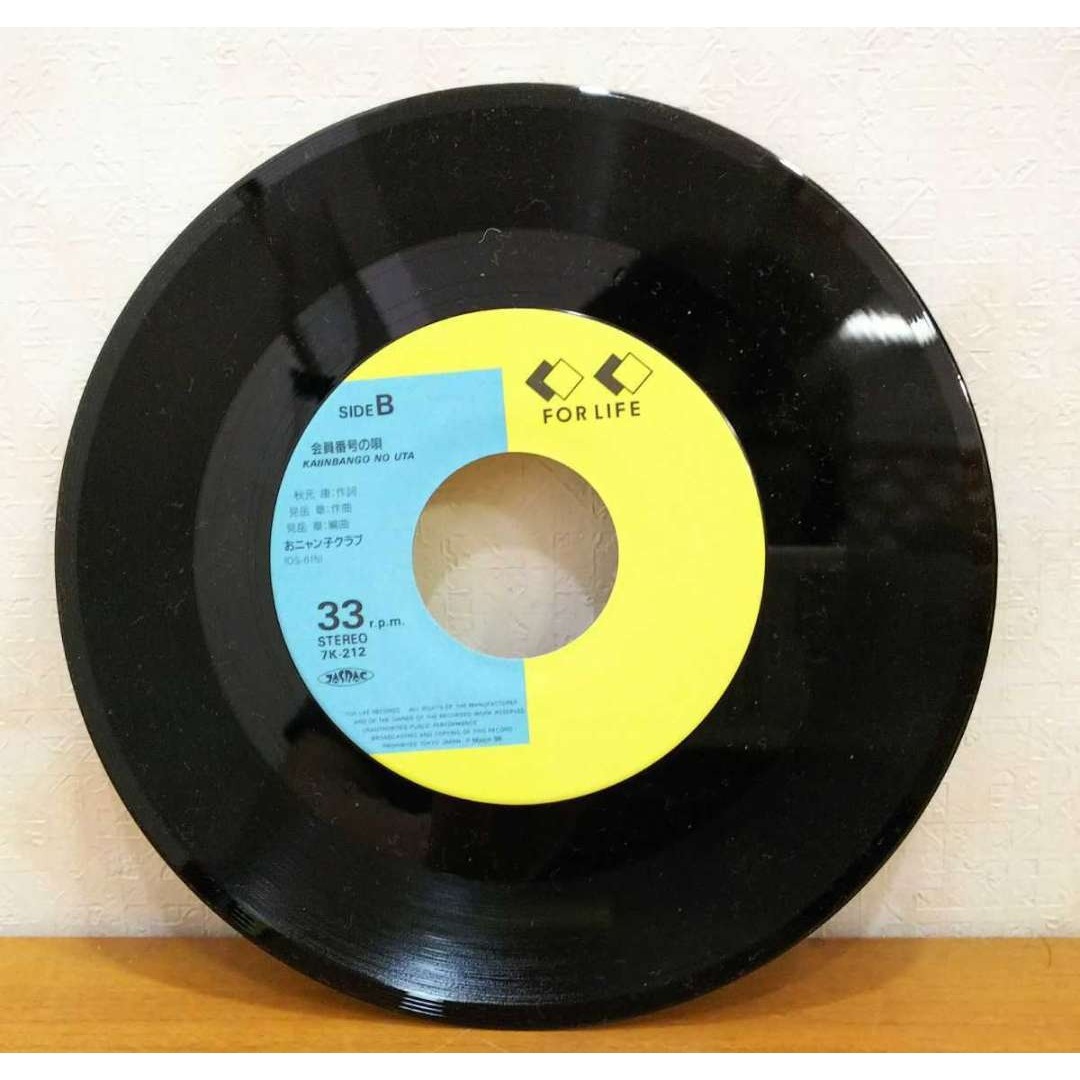 昭和アイドルブームの中心にいた おニャン子クラブ の人気曲「会員番号の唄」を収録したEPレコードです。
