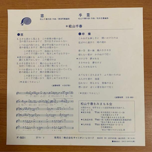 切なさと温もりを併せ持つ歌声が胸に響く**「窓」、 そして旅立ちの情景を描いた「卒業」**を収録した1枚です。