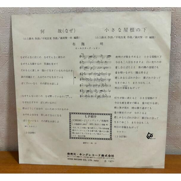 布施明のシングル盤EPレコード「何故(なぜ)/小さな屋根の下」(キングレコード BS-1463)です。