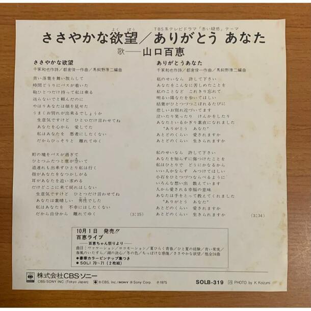 昭和を代表する歌姫・山口百恵の人気シングル盤。