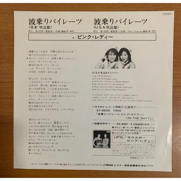 昭和の人気デュオ、ピンク・レディーのシングル盤『波乗りパイレーツ』。