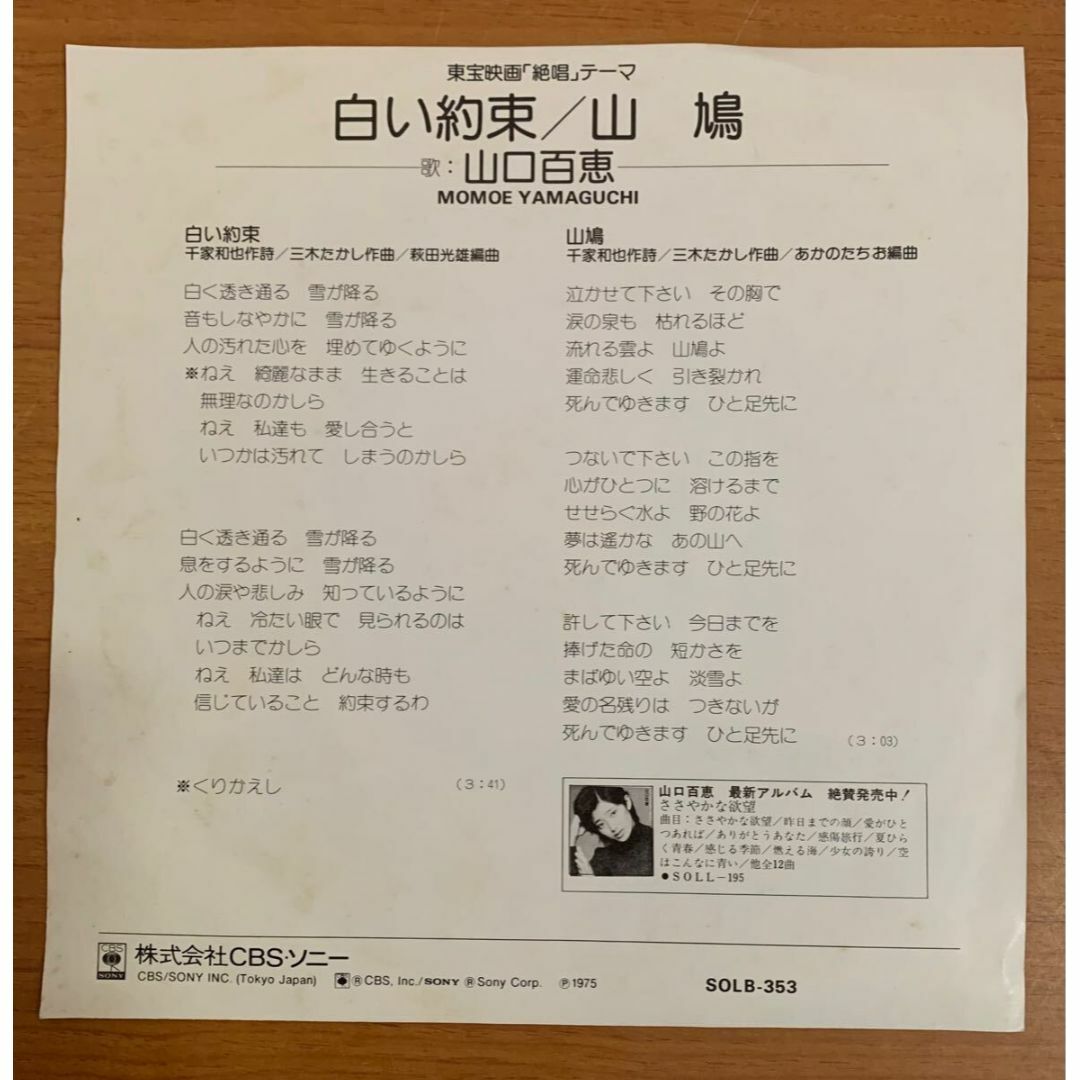 カップリング曲「山鳩」を収録した全2曲入りEPレコードです。