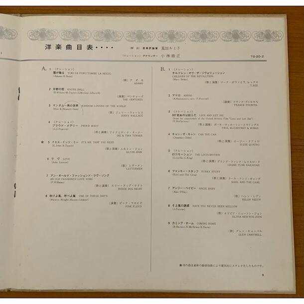 東芝EMI株式会社の創業20周年を記念して制作された非売品レコード。