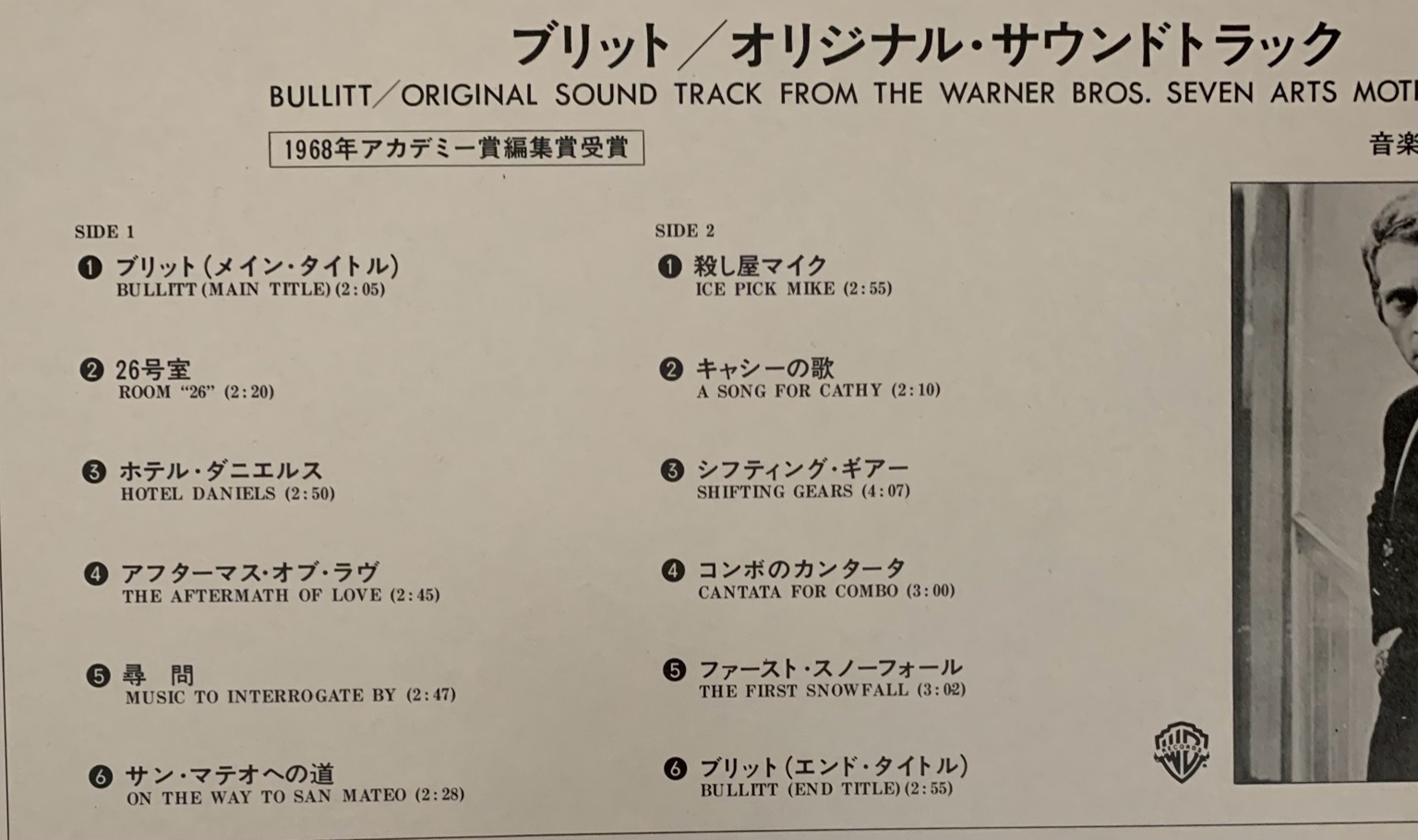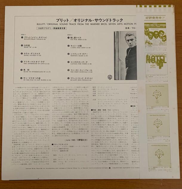 1968年公開の名作映画『ブリット』のオリジナル・サウンドトラックLPレコードです。