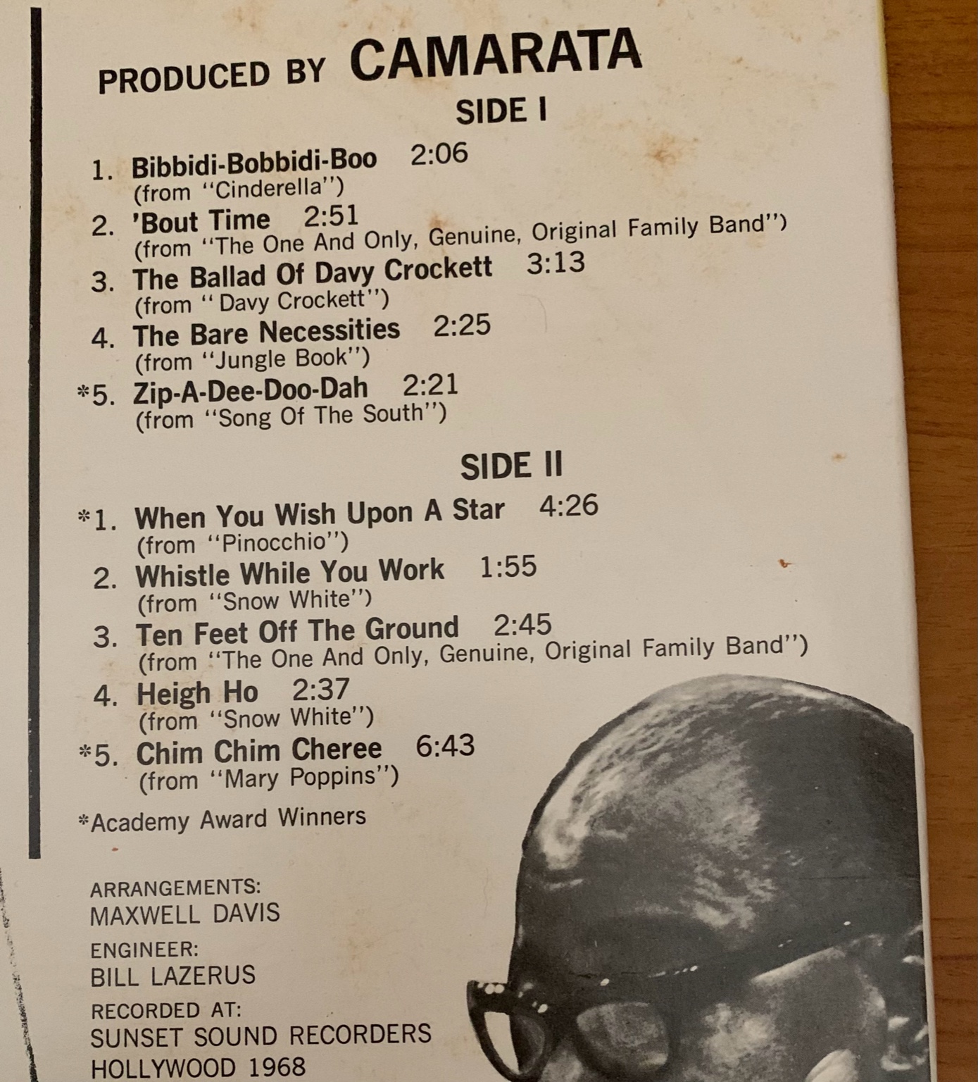 1968年録音の作品で、ディズニーとジャズの融合が楽しめる貴重なアルバムです。