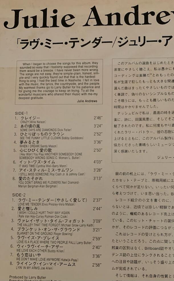ジュリー・アンドリュースによる名盤LPレコード『ラヴ・ミー・テンダー』です。