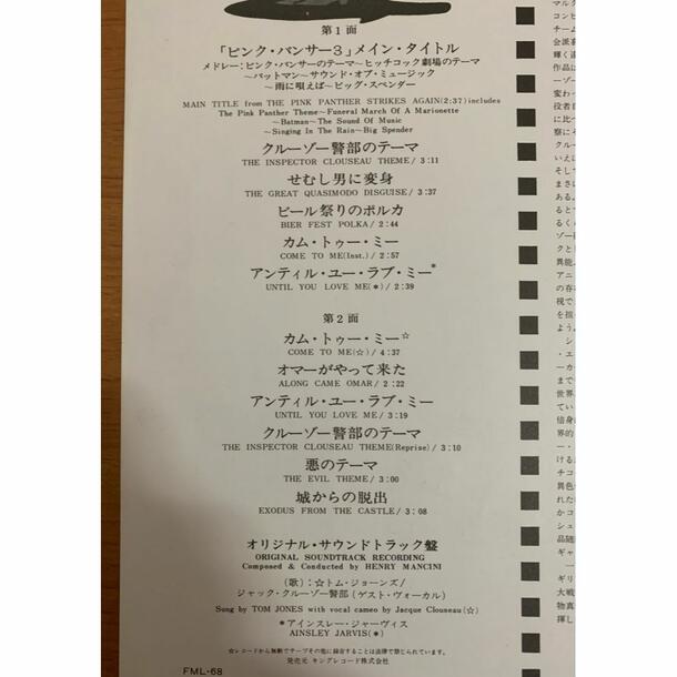 1976年公開、ピーター・セラーズ主演のコメディ映画『ピンク・パンサー3』のオリジナル・サウンドトラック。
