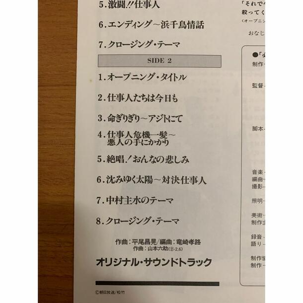 時代劇ファン必見の一枚、人気テレビシリーズ『必殺仕事人』のサウンドトラック盤です。