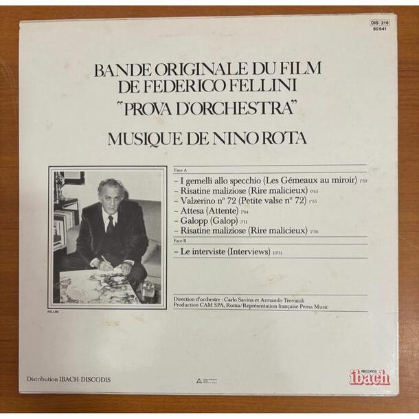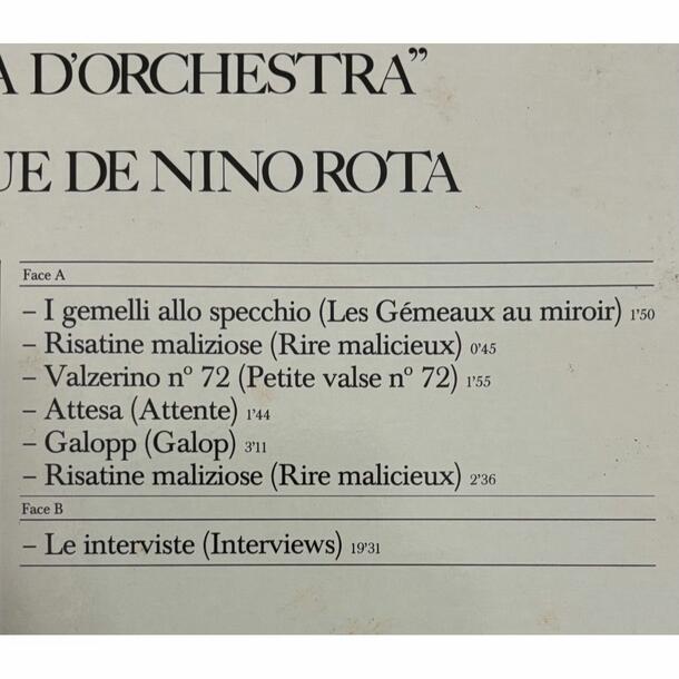 名匠フェデリコ・フェリーニ監督による映画『Prova d’orchestra』(邦題:オーケストラ・リハーサル/1978年公開)のオリジナル・サウンドトラック盤です。