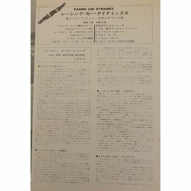 エンジンの轟き、コーナリングの迫力、ピットからコースへ飛び出す瞬間の音など、モータースポーツの世界をそのままレコードに閉じ込めています。