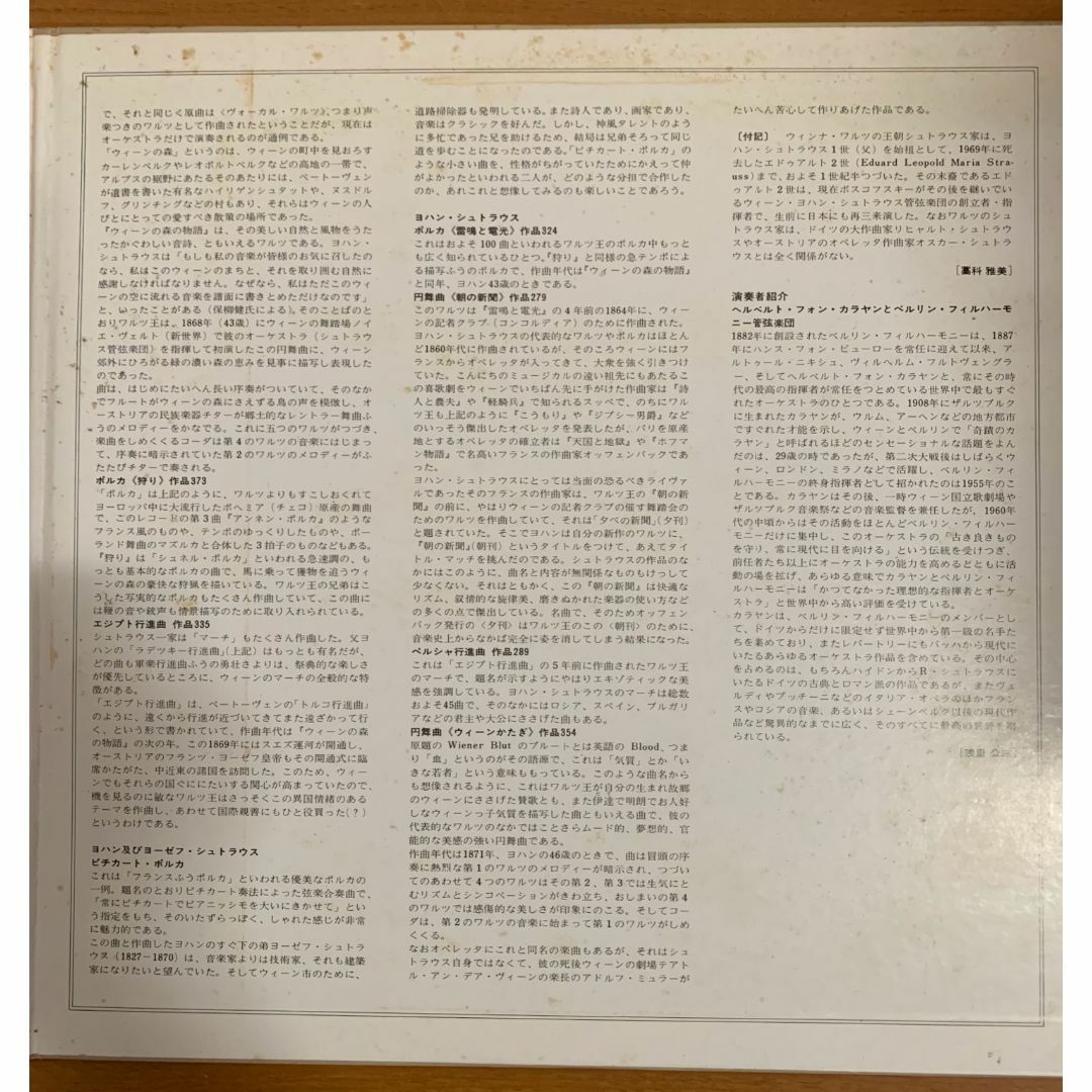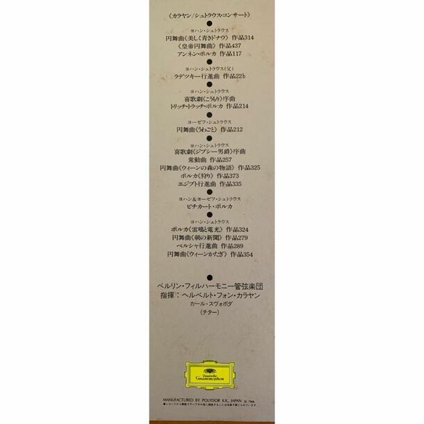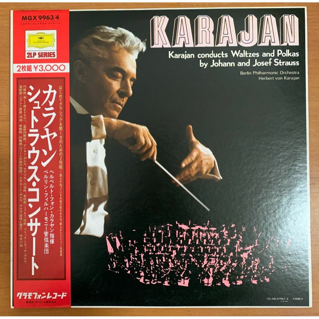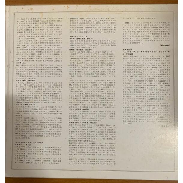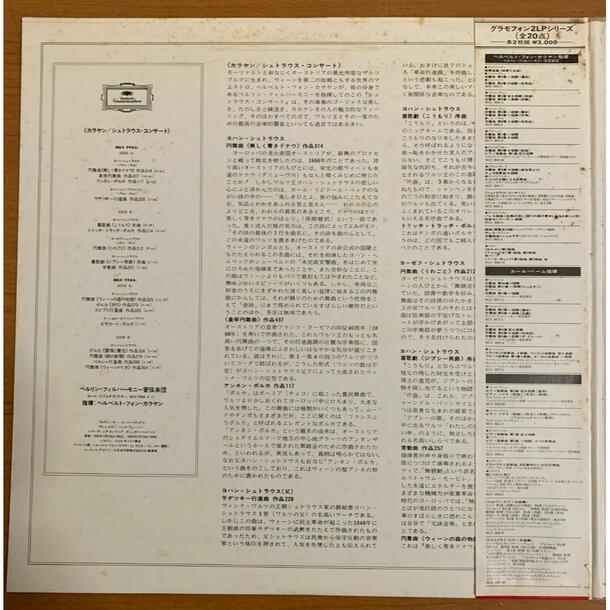 20世紀を代表する名指揮者 ヘルベルト・フォン・カラヤン が、ベルリン・フィルハーモニー管弦楽団を指揮して演奏したヨハン・シュトラウス、ヨーゼフ・シュトラウス作品のコンサート録音を収めた2枚組LPです。