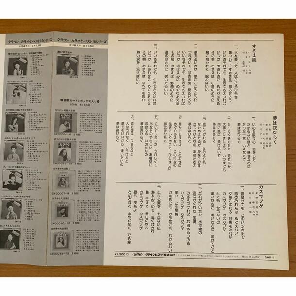 ご家庭でのカラオケ練習用としてはもちろん、当時の歌謡曲を楽しみたい方にもおすすめの一枚です。
