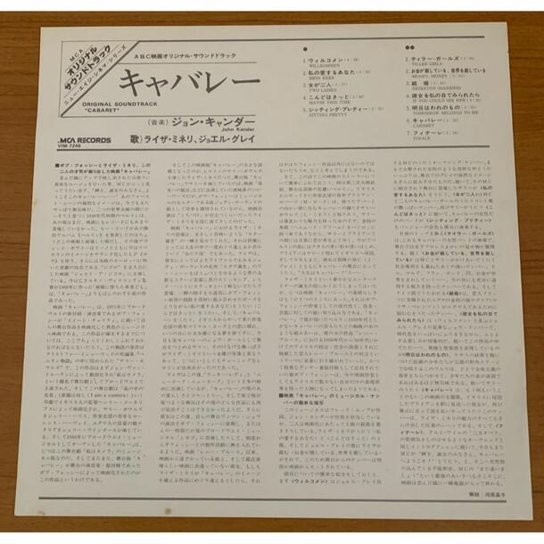 ミュージカル映画『キャバレー (CABARET)』のオリジナル・サウンドトラックLPです。