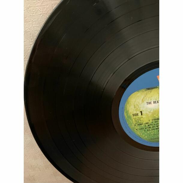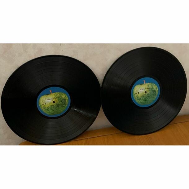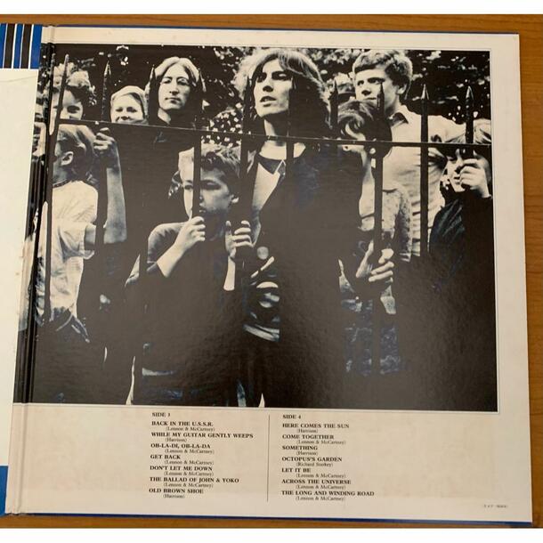 ジャケットには有名な「赤盤」と対になるアップル社屋バルコニーでの写真が使用され、コレクターにも評価の高い一枚です。