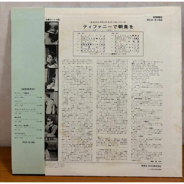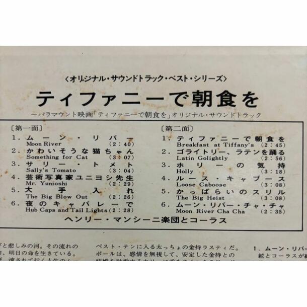 名作映画『ティファニーで朝食を(Breakfast at Tiffany’s)』のオリジナル・サウンドトラック盤です。