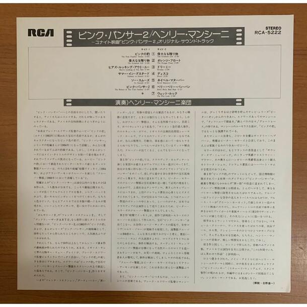 映画『ピンク・パンサー2(THE RETURN OF THE PINK PANTHER)』のオリジナル・サウンドトラック盤です。