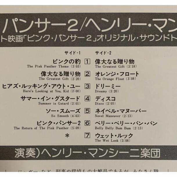 「ピンク・パンサーのテーマ」をはじめ、ジャズテイストあふれる洒脱な楽曲が収録されています。