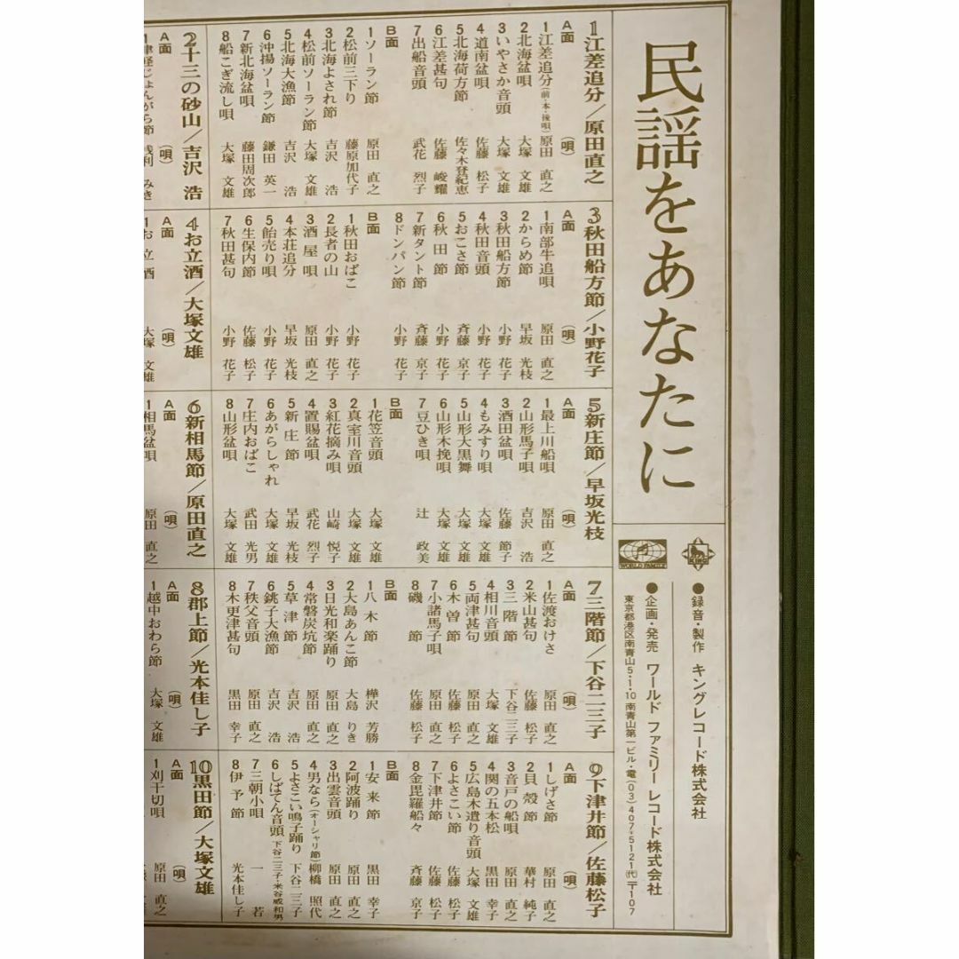 日本各地の民謡を厳選収録した、聴きごたえある10枚組LPボックスセット。