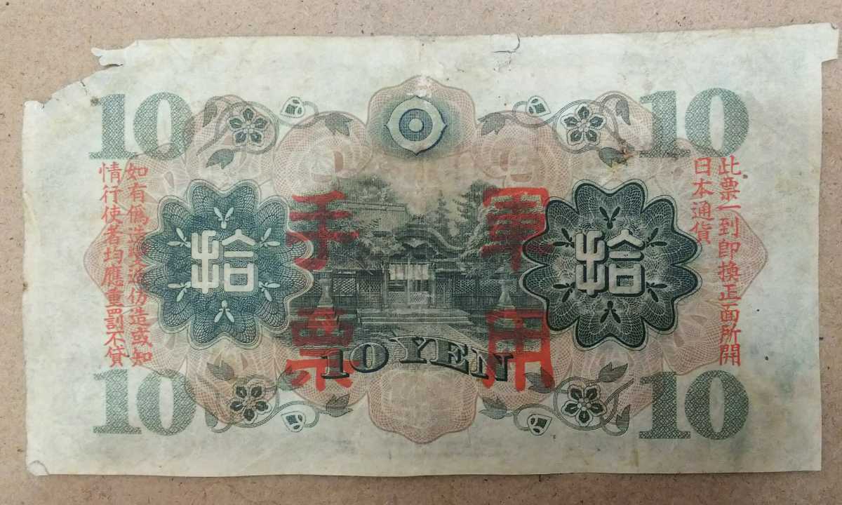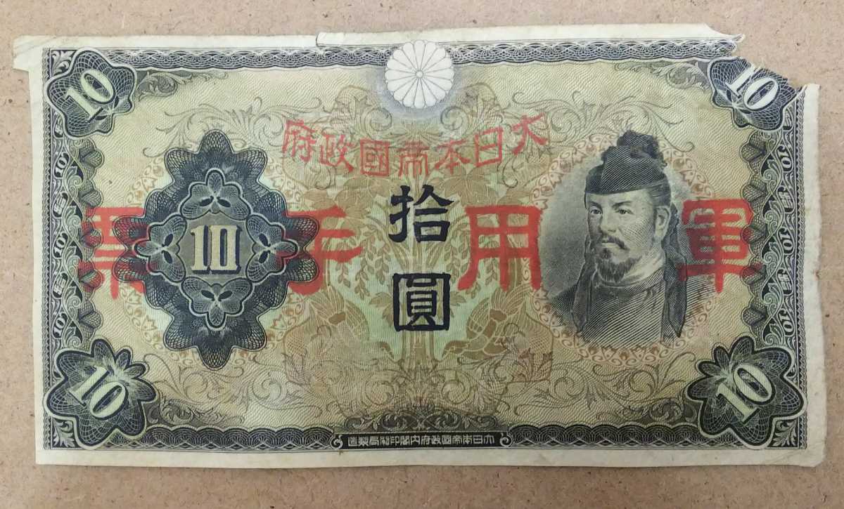 大日本帝国政府(日華事変軍票:1次10円 補正 かんとん印無) 丙号10円
