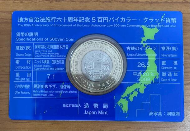 07-101-M:地方自治法施行60周年記念貨幣 六十周年 北海道500円バイカラー・クラッド貨幣 カード型