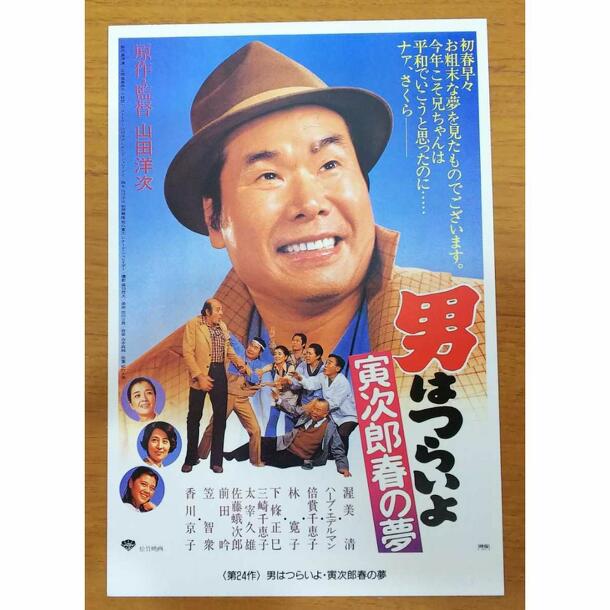 日本映画の名作シリーズ「男はつらいよ」第24作『寅次郎春の夢』(原作・監督 山田洋次)の公開記念に製作された絵はがきです。