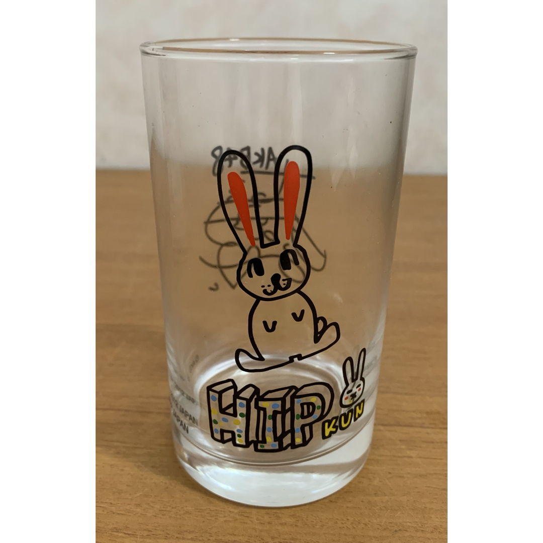 グラス本体には彼女のイラスト「HIP KUN(ウサギ)」とサイン風プリント入り。
