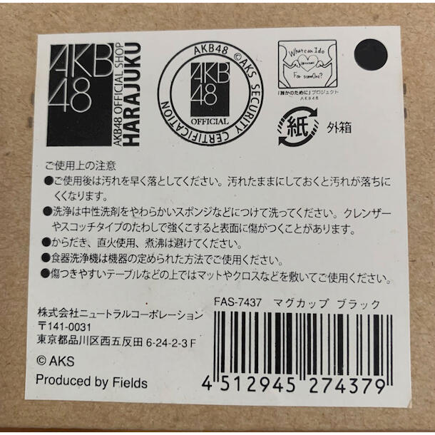AKB48オフィシャルショップのオープン記念として制作された、シンプルでスタイリッシュなデザインのマグカップです。