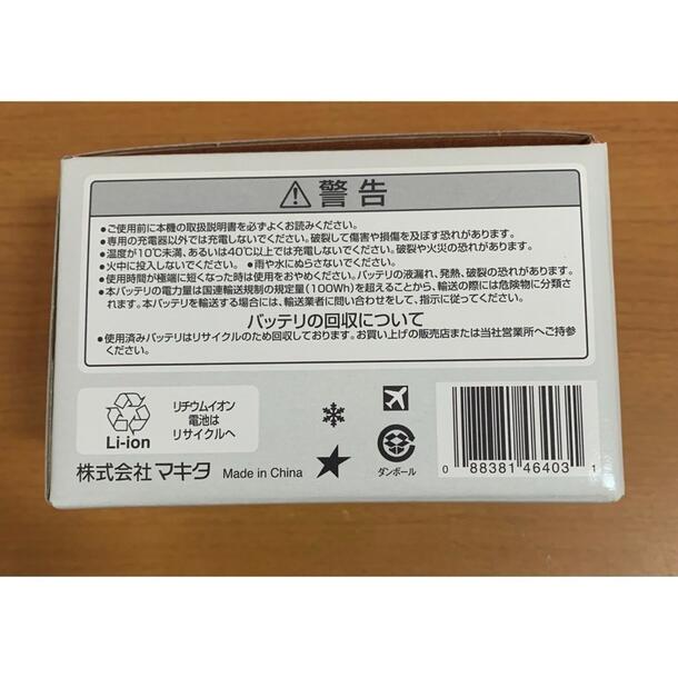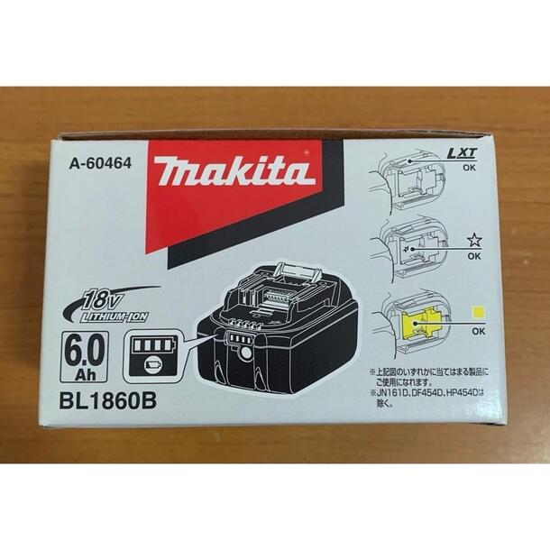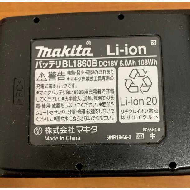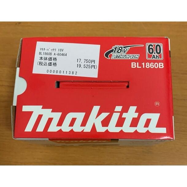 マキタの純正リチウムイオンバッテリー BL1860B (18V / 6.0Ah) です。