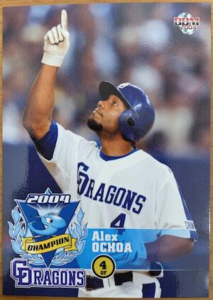 2004年のセントラル・リーグを制覇した『オレ竜』・中日ドラゴンズの優勝記念カードセットのレギュラーカードより、アレックス選手です。この『オレ竜』セットは6000ボックス限定発売ですので、各シングルカード6000枚限定ということになります。