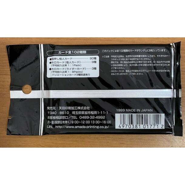 こちらは「仮面ライダー 1号・2号編」のパックで、全102種類のカードがラインナップされています。