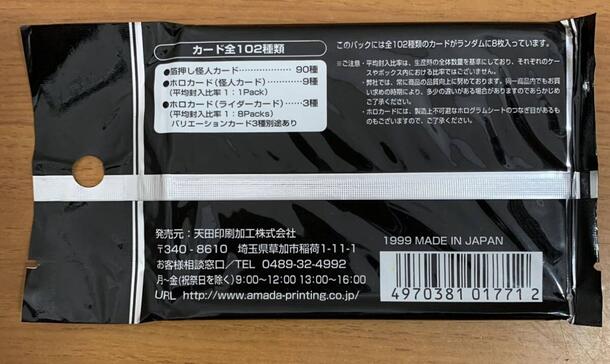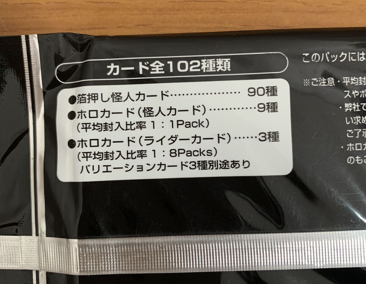 こちらは「仮面ライダー 1号・2号編」のパックで、全102種類のカードがラインナップされています。