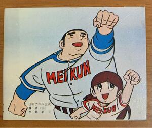 駄菓子屋などで販売されていた当時の印刷カードで、明訓高校の山田太郎と岩鬼正美が描かれた懐かしいデザイン。