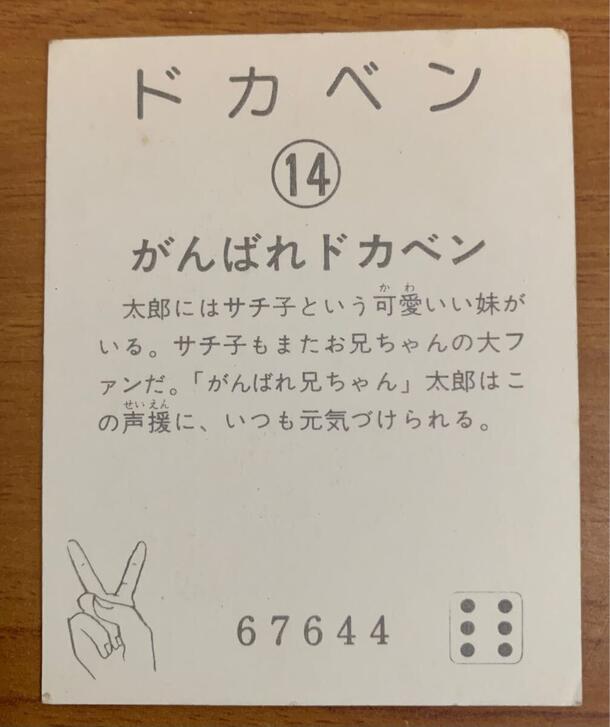昭和の人気野球漫画『ドカベン』(原作:水島新司)のミニカード、14番「がんばれ ドカベン」です。