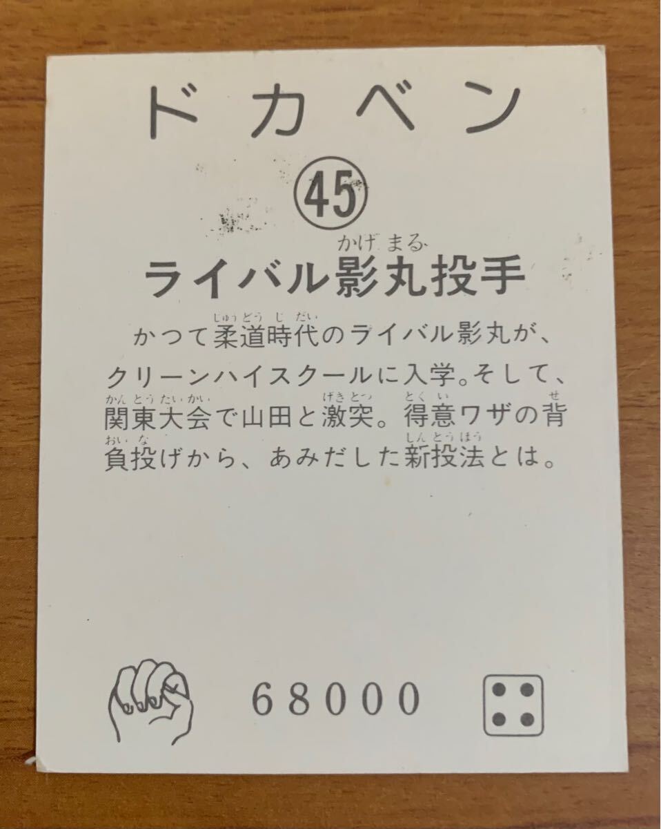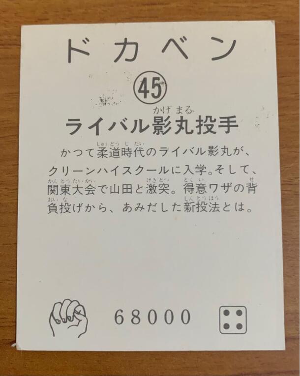 昭和の名作野球漫画『ドカベン』(原作:水島新司)のミニカード、45番「ライバル影丸投手」です。